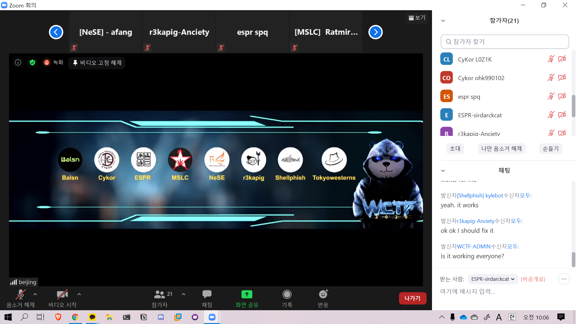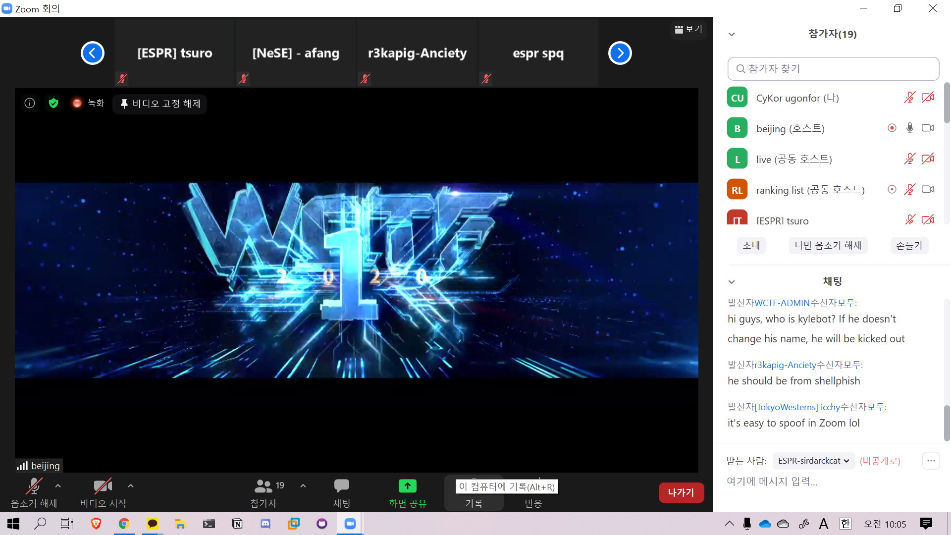 사실 제가 알기로는 벨루미나 서울에서 1등한 팀을 초청하는 거로 알고 있었는 데, 올해는 벨루미나 서울이 정원 부족으로 모집 자체를 안해서 열리지가 않았고, WCTF측에서 우리팀으로 연락이 왔습니다.