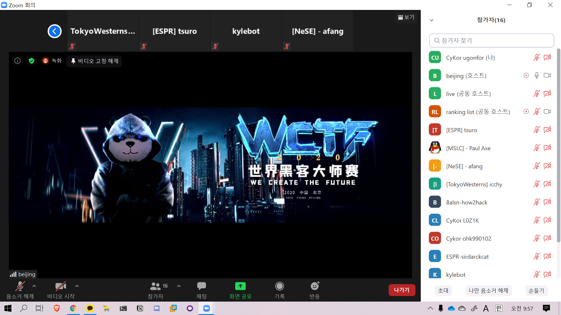 원래는 대회가 중국 베이징에서 열리는 대회였는 데, 올해가 시국이 킹시국인지라 아래처럼 온라인으로 진행됬습니다...