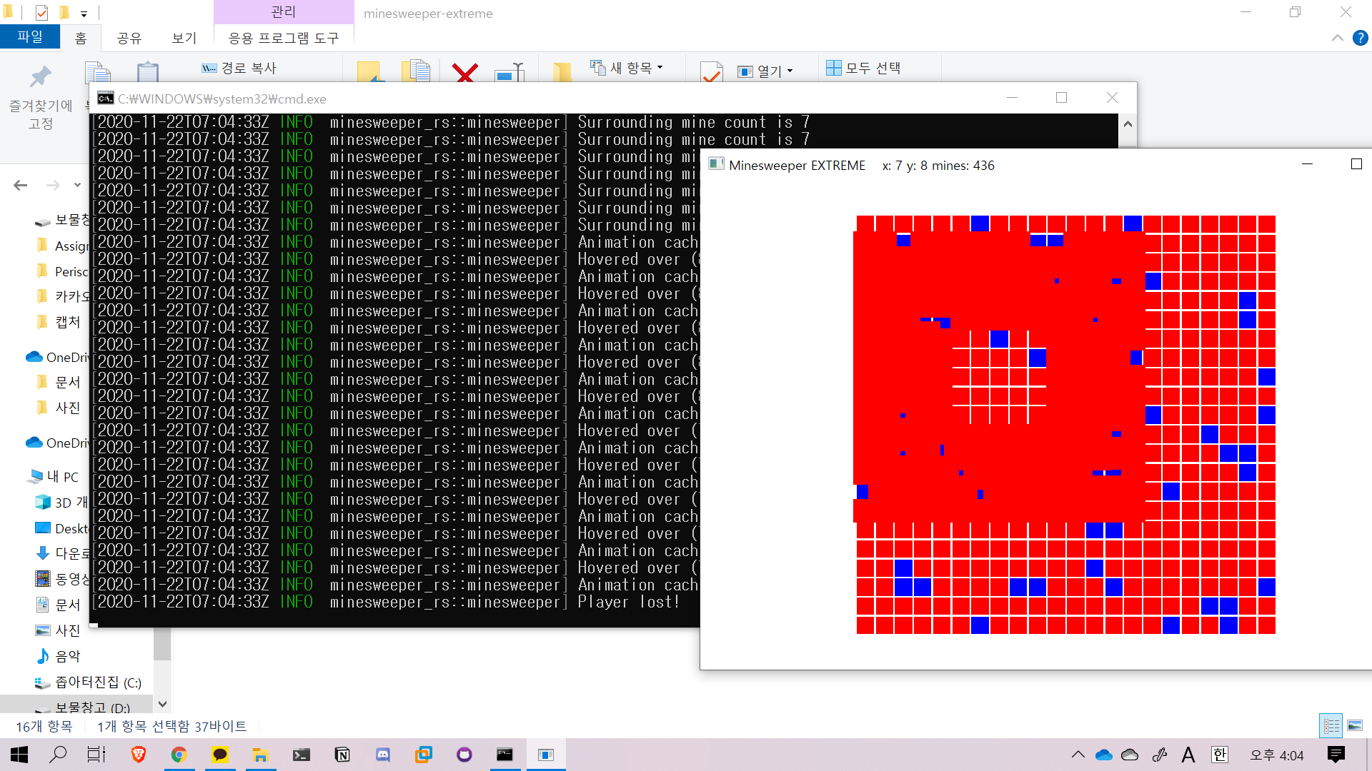 나중에 세미나에서 보니까 로직이 돌아가는 동안 걸리는 시간의 차이로 이를 py autogui로 이용해서 로그가 뜨는 속도 차이를 캐치하고 이를 이용해서 지뢰인지 아닌지 계산하는 거였습니다... 굉장히 아쉽더라구요... 에효....
