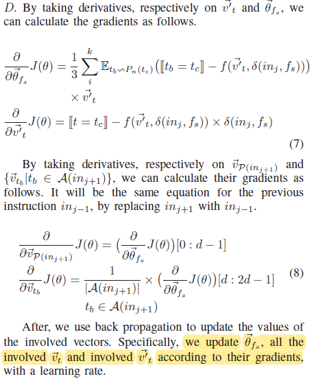 이때, |D|가 asm instruction을 모두 고려해야 해서 값이 너무 크다보니 이를 줄이기 위해서 k negative sampling을 이용한다.