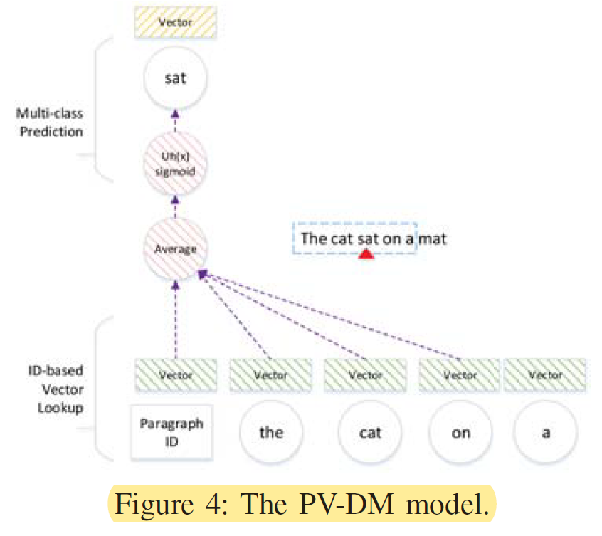 PV-DM 모델은 word2vec 모델을 확장한 것으로 Paragraph를 vector로 표현하는 방법을 학습한 모델이다.