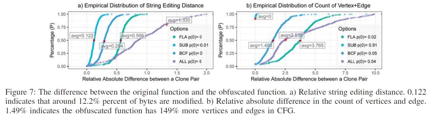 이를 측정한 방법은 a)bytes가 얼마나 다른지 확인을 하였고, b) CFG가 얼마나 차이가 나는 지 확인하였다.
