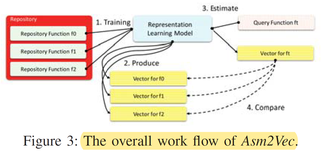 이제, Clone Search Solution을 만드려고 하는 데, 이를 위해서는 assembly code를 vector로 표현을 해야할 필요가 있다. (물론, 각각의 feature를 잘 표현하게! (Robust하게!))