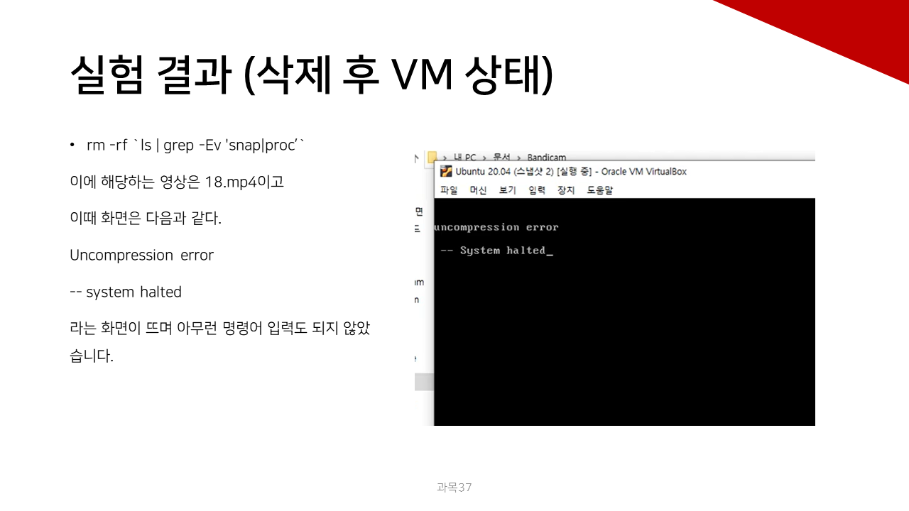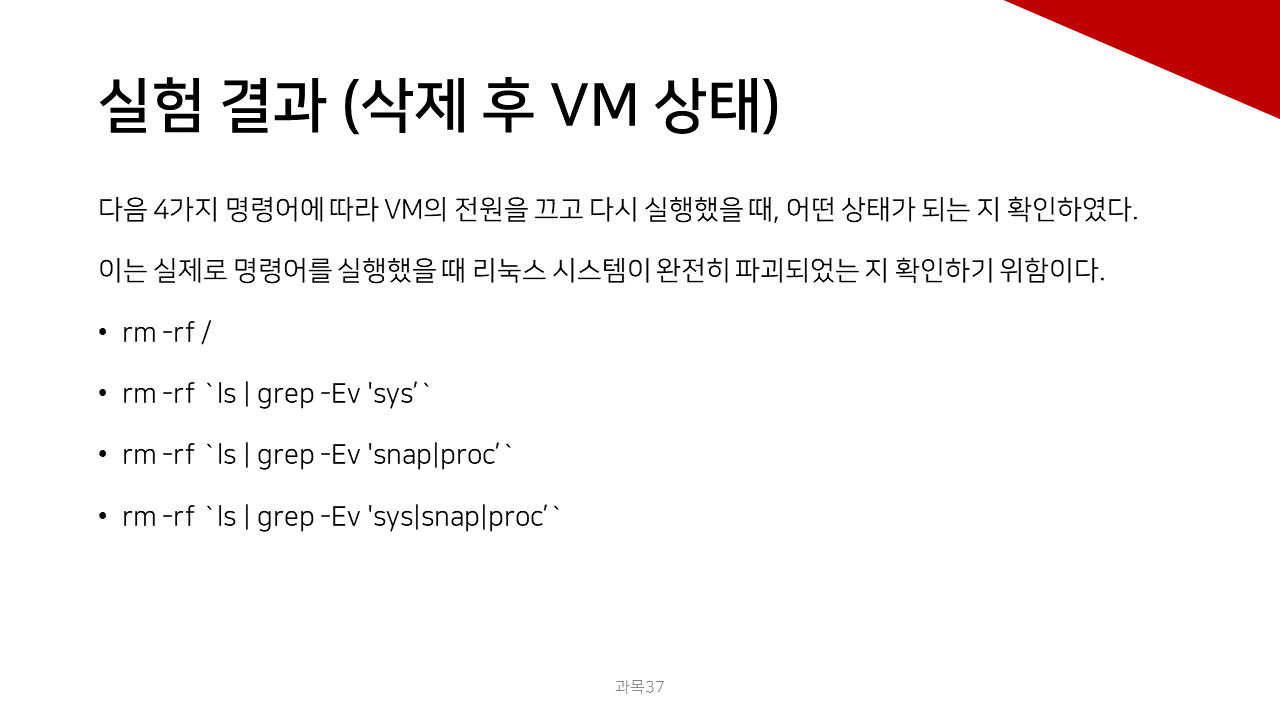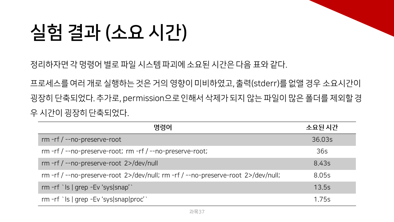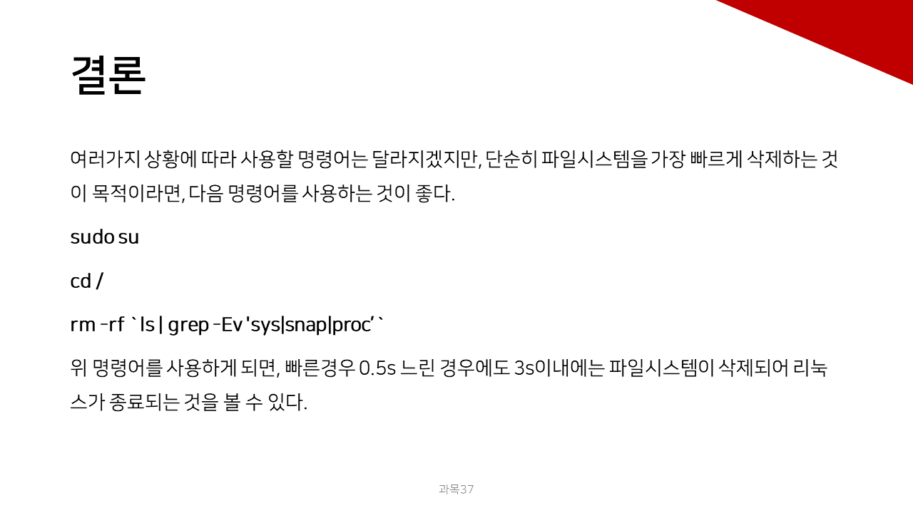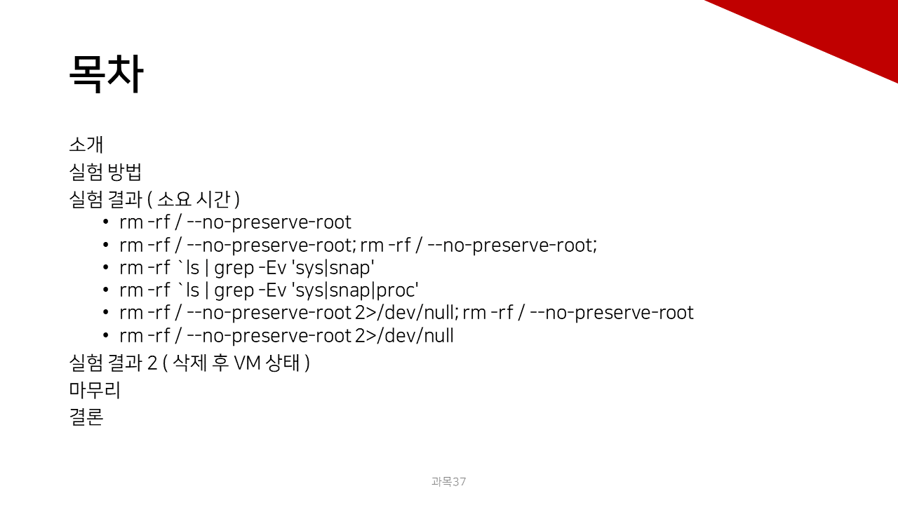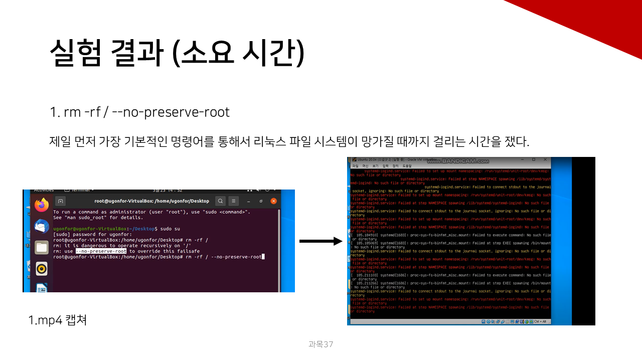 위 링크에서 실제로 rm -rf / 박는 영상을 확인할 수 있는 데 꽤 흥미롭고 재미있습니다 ㅎㅋㅋ