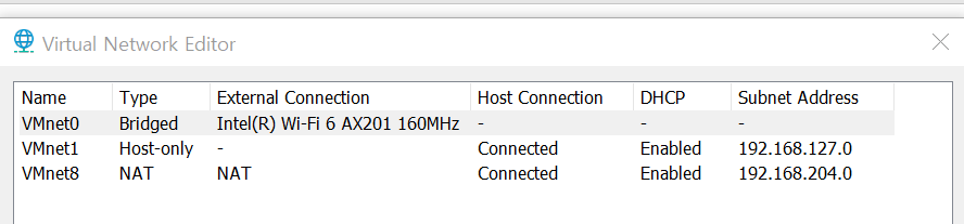 그럴 때는 VMWare Network Editor를 추가적으로 설정해주어야 합니다.