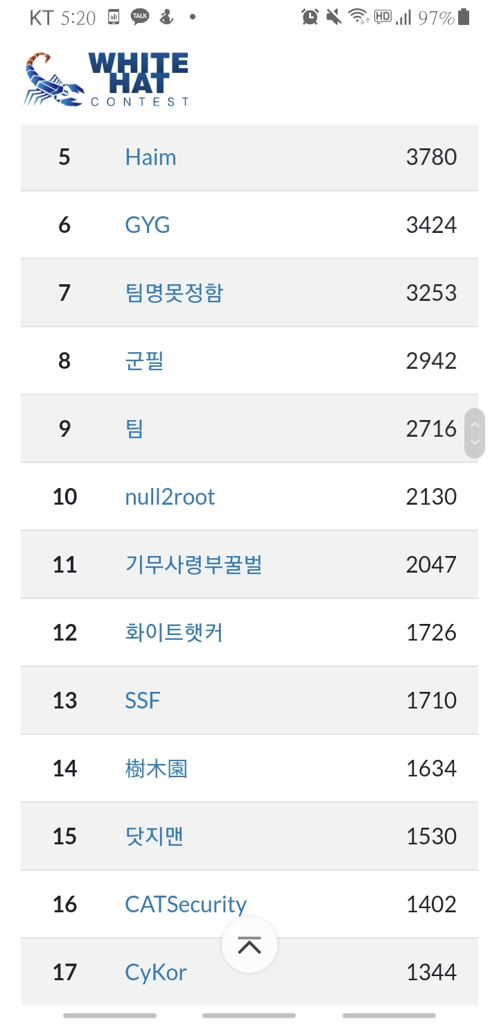 화이트햇 콘테스트는 17위