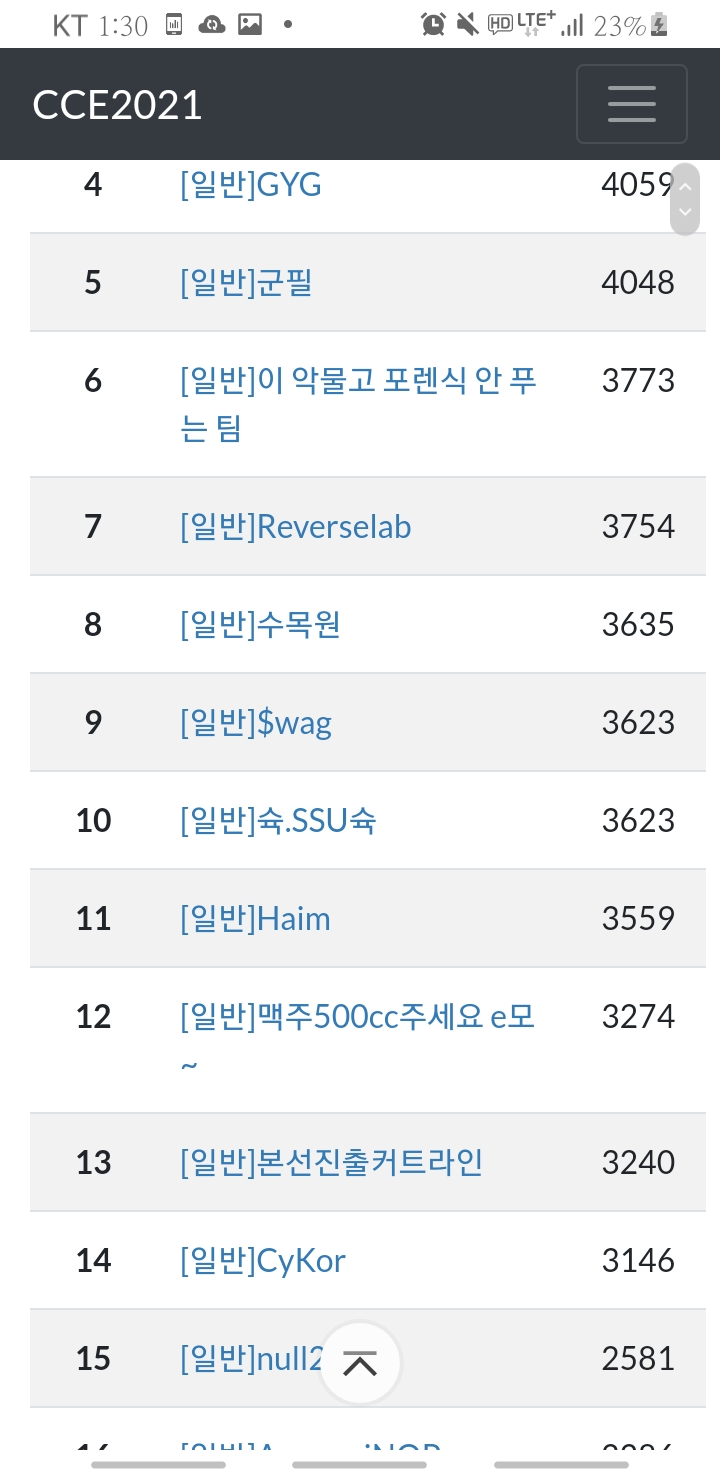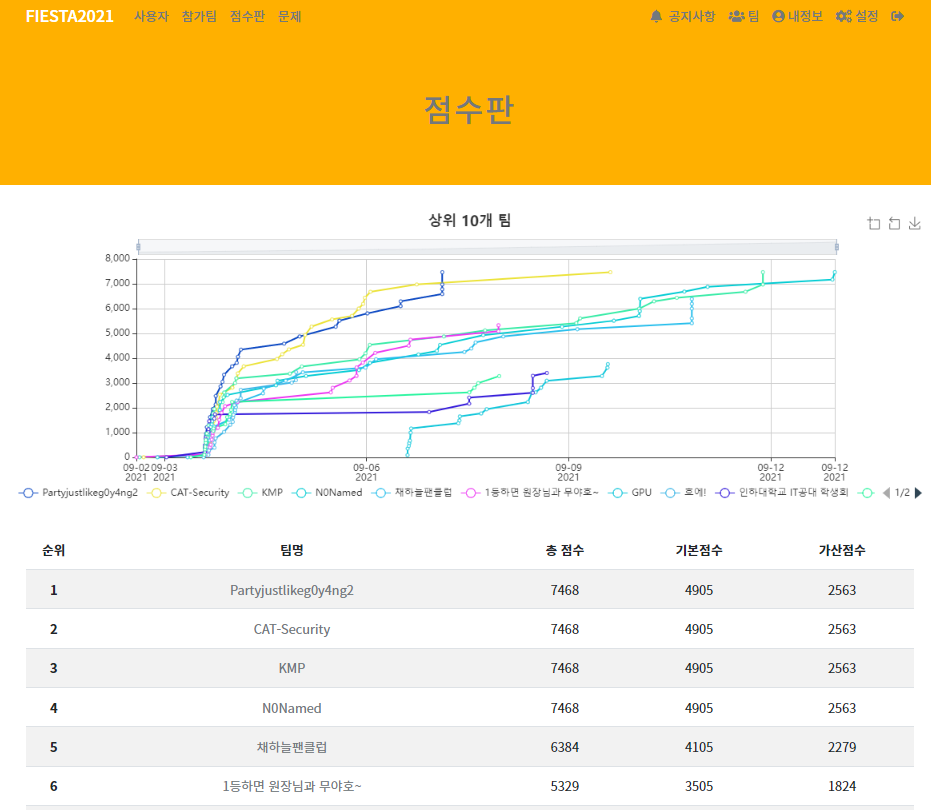 물론 화이트햇은 좀 차이 나긴 하는 데 ㅎㅎ.. 피에스타는 한두문제 때문에 상 못받고 CCE는 한문제 때문에!!! 하아 ㅠㅠ