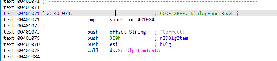 즉 hmmm함수를 바꾸기 전에 eax를 0x401071로 바꾸어놓으면 될거로 보인다.
