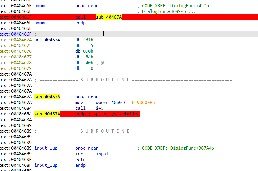 그리고 저 hmmm___가 0x6e8로 바꾸는 부분은 이후에 hmmm함수가 실행되거나 하지 않기에 신경쓸 필요 없을거 같다.