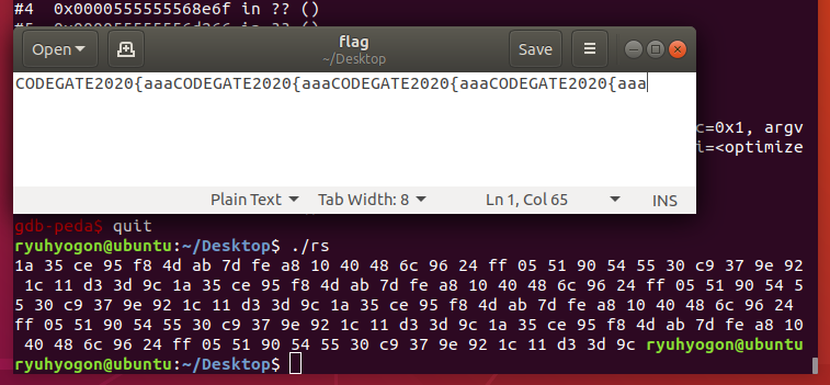 참고로, 저는 함수 열때마다 gdb로도 실행해보면서 매개변수값이 무엇이 들어가고, 반환값이 무엇인지 확인을 했습니다. last로 명명한 것들은 다 함수를 지나기전에는 ./rs 를 실행했을 때 반환하는 이상한 헥사 값이 없다가 함수를 지난 후에는 생기는 함수들입니다.