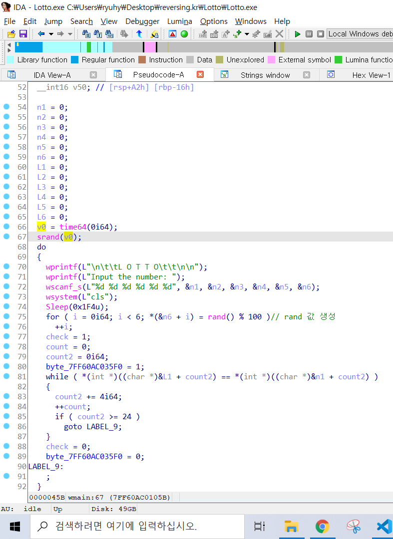 근데 srand함수가 대놓고 취약하게 보여주니까 로또번호를 맞추기로 했습니다.