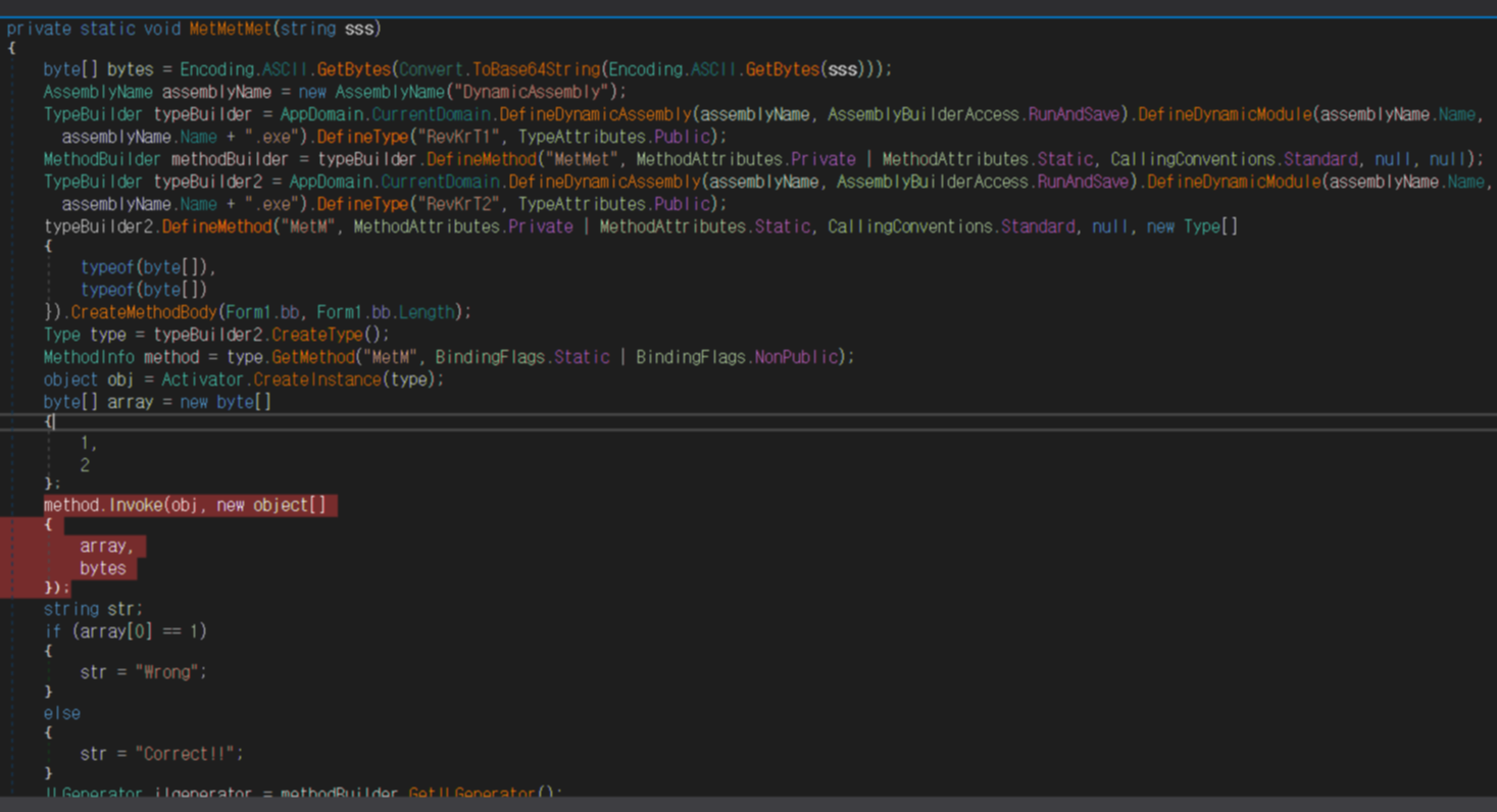 // RevKrT2 // Token: 0x06000001 RID: 1 private static void MetM(byte[] A_0, byte[] A_1) { if (A_1.Length == 12) { A_0[0] = 2; if ((A_1[0] ^ 16) != 74) { A_0[0] = 1; } if ((A_1[3] ^ 51) != 70) { A_0[0] = 1; } if ((A_1[1] ^ 17) != 87) { A_0[0] = 1; } if ((A_1[2] ^ 33) != 77) { A_0[0] = 1; } if ((A_1[11] ^ 17) != 44) { A_0[0] = 1; } if ((A_1[8] ^ 144) != 241) { A_0[0] = 1; } if ((A_1[4] ^ 68) != 29) { A_0[0] = 1; } if ((A_1[5] ^ 102) != 49) { A_0[0] = 1; } if ((A_1[9] ^ 181) != 226) { A_0[0] = 1; } if ((A_1[7] ^ 160) != 238) { A_0[0] = 1; } if ((A_1[10] ^ 238) != 163) { A_0[0] = 1; } if ((A_1[6] ^ 51) != 117) { A_0[0] = 1; } } }딱봐도 뭔가 있죠?